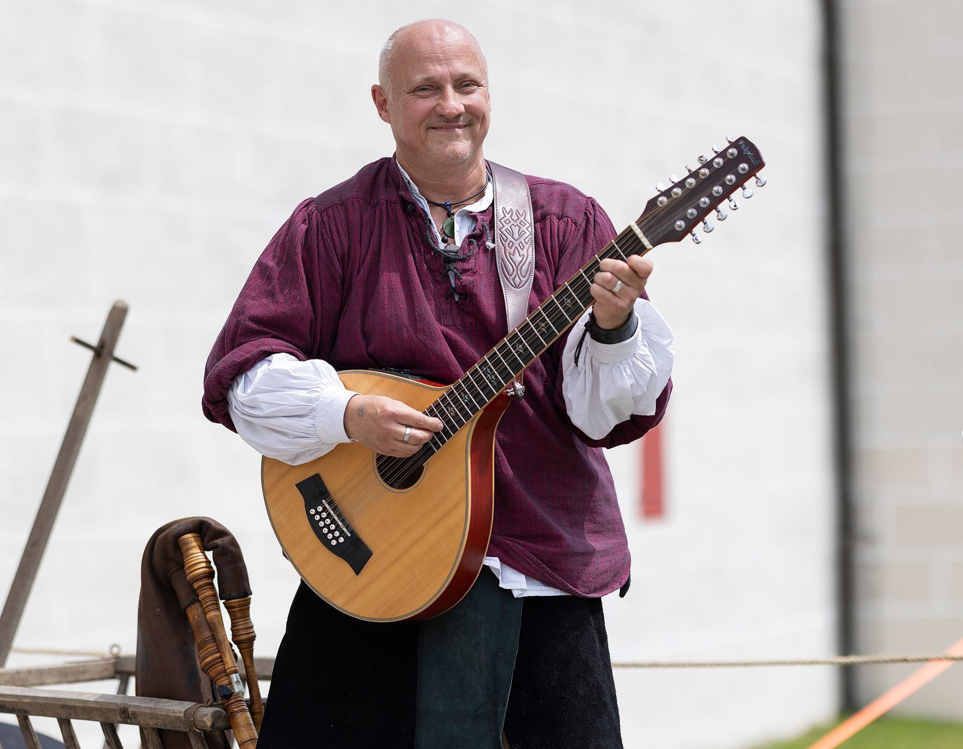 Er spielet die gar lauten Instrumenter wie den Sack und die Schalmeien. Er bringet uns befremdliche Melodeyen vom Balkan und von noch weiter her. Er delirieret auch auf der Tagelharpa welche ihm kürzlich zugelaufen.